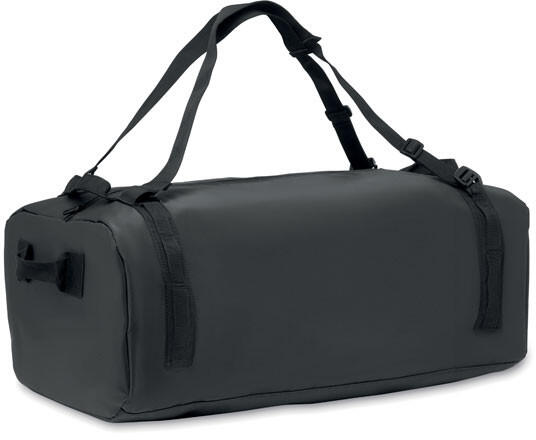 Nagyméretű, hátizsákként is használható, sport- vagy utazótáska 50C tarpaulin anyagból, cipzáras belső rekesszel. Levehető és állítható vállpánttal, RPET béléssel.